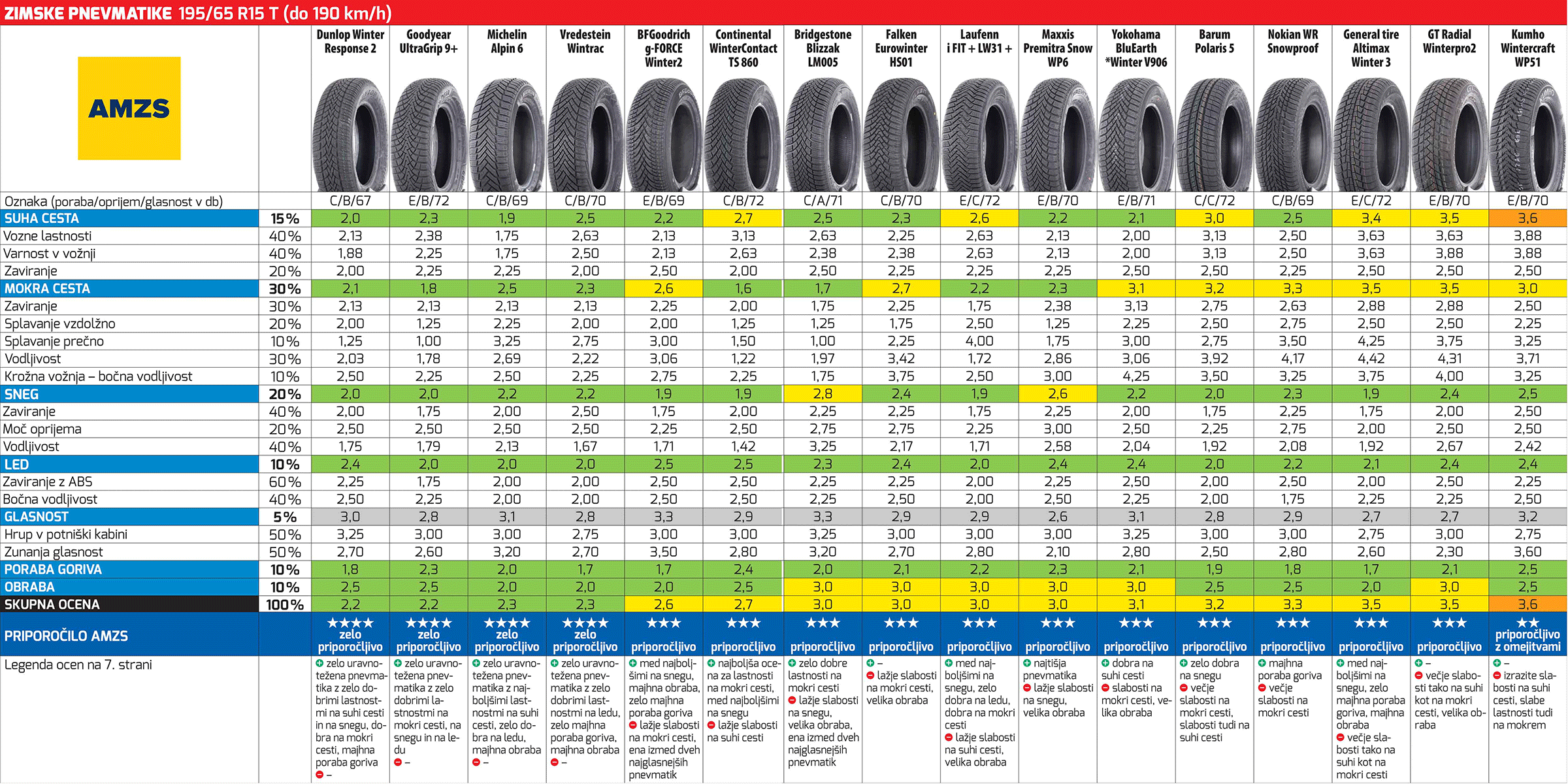 AMZS test zimskih pnevmatik (2021): 195/65 R15 T