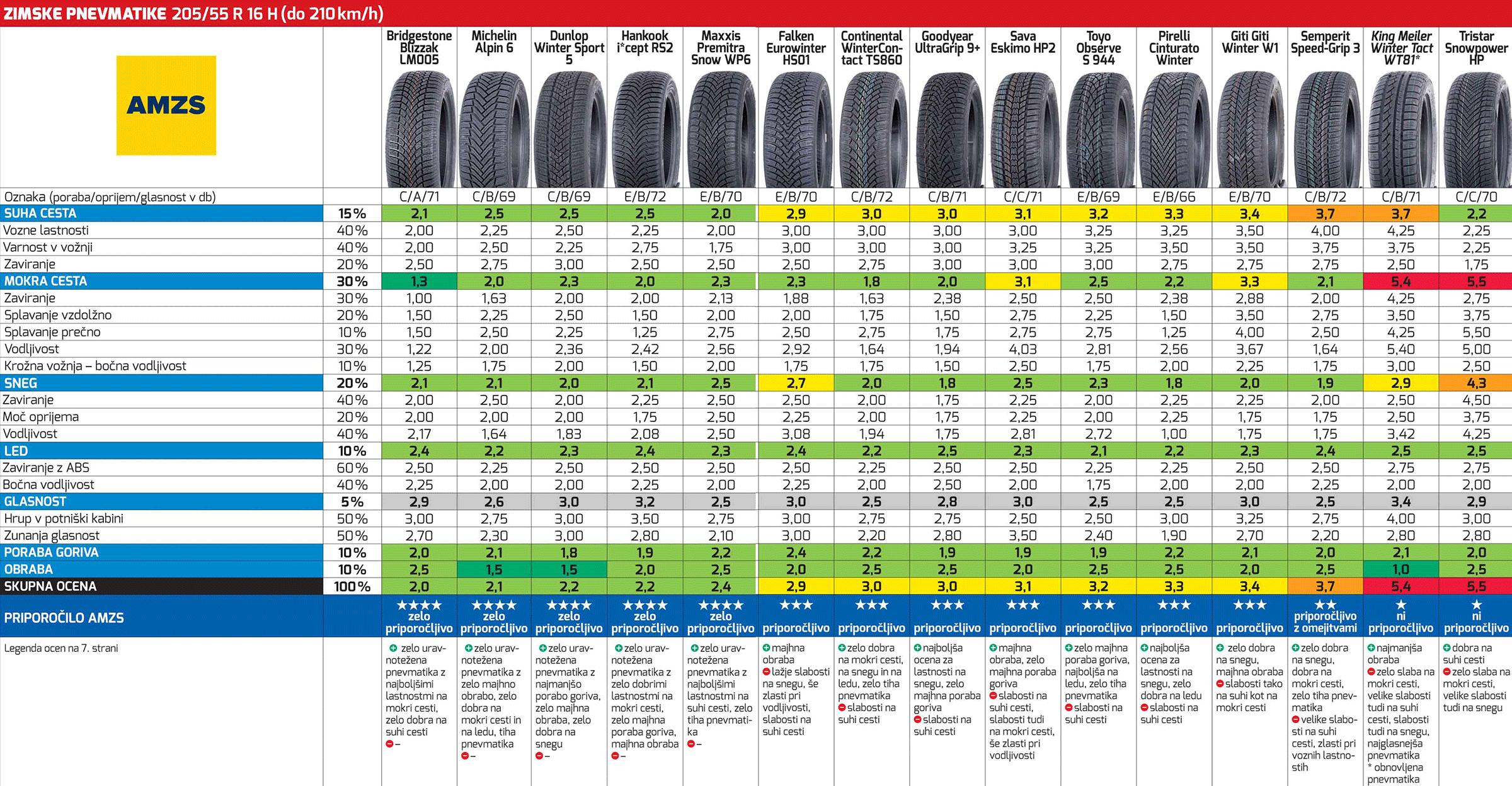 AMZS test zimskih pnevmatik (2021): 205/55 R16 H